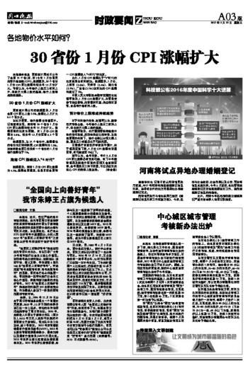 30省份1月份CPI涨幅扩大