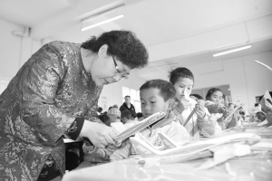 2月27日,科普专家在为加车小学学生讲解飞机模型制作方法。