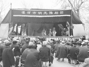 清明节假期期间,有关部门请剧团在周口大闸附近演了一场大戏,数百名老人沐浴暖暖春风,听得津津有味。晚报记者 徐松 摄