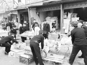“老乡,我们帮你把外面的货物抬进去”、“门店招牌只能有一个,马路上不能摆放落地广告牌,也不能乱扯乱挂宣传条幅”……当日9时许,整治行动开始。在城管队员的耐心劝说下,绝大多数占道和出店经营的商家,都能自觉配合工作,主动收回各自堆放在店外的占道物品。