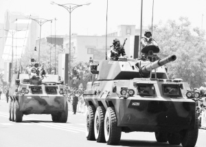这是4月4日在塞内加尔首都达喀尔拍摄的参加阅兵的塞内加尔装甲车方队。