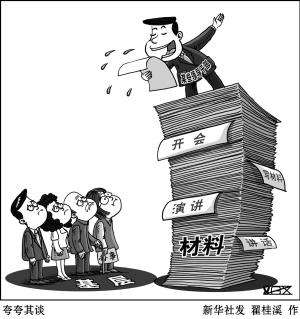 最近,新华社记者在北方某省份采访,一名厅级干部向记者抱怨时间都用在开会、汇报、写材料和讲话上了,缺少时间学习研究和基层调研。这反映了部分干部的真实状态,近年来,少数领导干部泡在会上,埋在材料里,守在机关,时间放在“巧言”上,下基层、到群众中的时间少了、短了。群众批评这种干部,“有口才无真才”“只听楼梯响,不见人下来”。