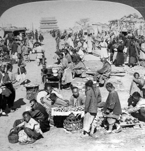 与颐和园的皇家“商业街”相比,老百姓的“商业街”显然脏乱许多。(影像志)
