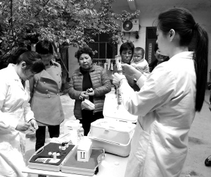 4月27日11时许,周口晚报记者在商水县张明乡王庄行政村村民王永祥家里看到,该县疾病控制中心的检测人员正在对王永祥家的自来水抽样检测(如图),几位村民在旁观看。据了解,为提高检测效率,该县疾病控制中心购置了先进仪器,可现场检测水样的PH值、浑浊度、总氯及余氯的含量。