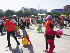 开幕式上,平安人寿周口中支举办的各种亲子游戏将本次活动带到了欢乐的高潮。本次“幕天捐书”共收到捐赠的图书超过2000册,将捐给淮阳县安岭镇程楼希望小学的孩子们。(记者 王吉城)