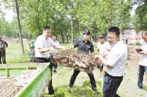 没有过多的客套话,王军、刘涛一行人忙着给万德银卸幼鸡、放幼鸭、搬饲料、规划整理池塘。“老万,有困难尽管说,我们帮你渡过难关,以后,我们会常来看你。”忙碌中,王军不时与万德银拉家常。“这些鸭子一个月后就可下蛋,中秋节时,幼鸡长成大红公鸡就可销售,到今年底可实现利润一万元。我回去后就给你申请养殖补贴,一只家禽补贴10元。”刘涛一边给万德银算脱贫账,一边给他鼓劲。