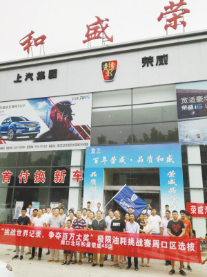 本报讯 6月25日上午,“挑战世界纪录,争夺百万大奖”——荣威“千公里 一箱油”极限油耗挑战赛周口赛区选拔拉开大幕(如图)。本次挑战赛由上汽荣威周口区域授权经销商——周口和盛荣威4S旗舰店组织开展,赛事针对荣威i6、360车主,以指定路线自驾游形式开展。本次活动的举办,也吸引了众多荣威350、550、RX5车主,大家闻讯纷纷前来报名,为本次挑战赛加油助威!周口主流新闻媒体记者应邀参加了本次活动。