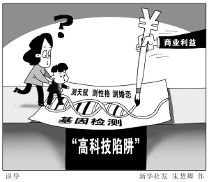 不少商家推出的基因测天赋、测性格,甚至测婚恋的服务,声称这种方法可以测出孩子的天赋、性格等。多位业内专家表示,看似“无所不能”的基因测序项目,不少是商业利益驱动下的“高科技陷阱”。新华社发
