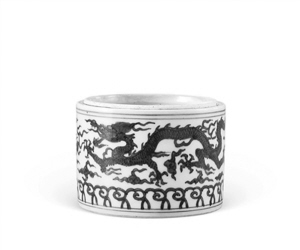 如今,古代蛐蛐罐在拍场炙手可热,甚至能拍出上百万的高价。早在1998年秋季,香港佳士得拍卖行就曾以73.5万元的高价拍出过一件“明万历五彩群猫纹花瓣式蛐蛐罐”。在2001年北京中鸿信秋季拍卖会上,一件“明宣德蓝釉龙凤纹鼓形蛐蛐罐”,成交价达到60万元。尤其值得一提的是,2004年10月24日在厦门宝龙大酒店举行的厦门国拍艺术品秋季拍卖会上,一件“明宣德青花鹰雁纹蛐蛐罐”的拍卖价竟高达200万元,比当时的估价高出近百万元。据一位行内人士透露,该蛐蛐罐在2003年时仅以18万元的成交价被人拍走,时隔一年,其身价竟飙升至200万元,令人惊叹。