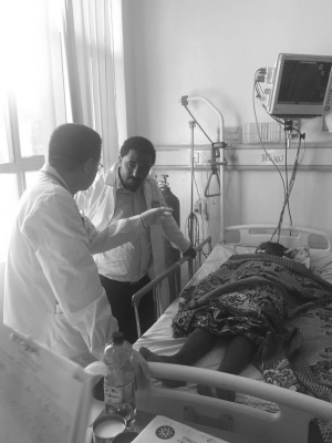 2017年3月4日凌晨1点左右,一阵急促的电话铃声惊醒了熟睡中的中国援埃塞俄比亚第十九批医疗队的麻醉科医师赵巍。他急忙穿好衣服,跑到手术室。原来是提露内丝-北京医院的一位医生在急诊行剖宫产手术的过程中,产妇突然出现心跳、呼吸骤停的现象。当时值班的医生立即实施CPR(心肺复苏术),15分钟后,产妇呼吸、心跳恢复。但是,该产妇病情极不稳定:意识丧失,双侧瞳孔中等度散大、光反射消失,呼吸急促,心率每分钟140多次。手术医生向中国医疗队寻求帮助。了解病人情况后,赵巍医生立即报告给我,我急忙起床赶到手术室。经简单了解病史及检查病人后,考虑产妇存在严重脑水肿、脑疝现象,病情危重,需要立即组织医疗队神经内科、心内科、妇产科医生到场进行抢救。凌晨1点30分,医疗队队员的宿舍响起了急促的敲门声,声音惊醒了熟睡中的其他队员,我来不及给大家解释立即带领队员们赶往手术室组织会诊和抢救!