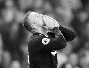 当地时间8月21日,埃弗顿队球员鲁尼在比赛中庆祝进球。当日,在2017~2018赛季英超联赛第二轮比赛中,曼城队主场以1∶1战平埃弗顿队。