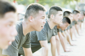 晨曦中,精神抖擞、步伐整齐、声音嘹亮的小伙儿们走向训练场。