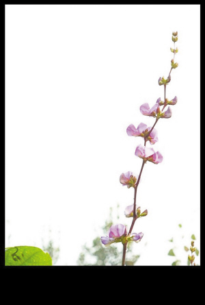 ■孙淑敏 兴致来时我喜欢用镜头寻找生活中的美,相机中的世界灵性十足——花含情、草含笑,蜂飞蝶舞,水天漾韵。沉浸其中,趣味盎然,满心愉悦。 小院中的豆角藤正是盛花期,层层绿意间缀满紫色的“蝴蝶”。忽然发现一朵逃逸的小家伙,只见一枝细藤旁逸斜出、逶迤盘旋、卓尔不俗,独立于竹架之外。细藤尾端调皮地绽放出一朵淡紫色的精灵,花柄之外,一缕花须依然绵延