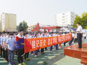本报讯 9月18日10时,急促的防空警报声在城市上空响起。此时,周口第十八初级中学校园传出阵阵朗诵声:“少年智则国智,少年富则国富,少年强则国强……”