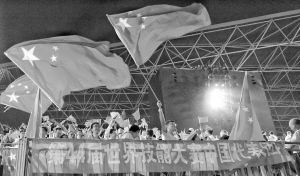10月14日,在阿拉伯联合酋长国首都阿布扎比举行的第44届世界技能大赛开幕式上,人们挥舞中国国旗欢迎中国代表团入场。