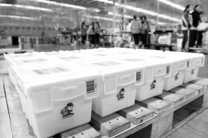 近日,一款可回收循环利用的“共享快递盒”走入大众视野。据首家使用和推广“共享快递盒”的苏宁易购介绍,电商物流将智能包装和末端服务相结合,采用可循环的特制快递包装盒代替传统常用纸箱,每个特制快递盒成本25元,可循环使用1000余次。新华社记者 李博 摄