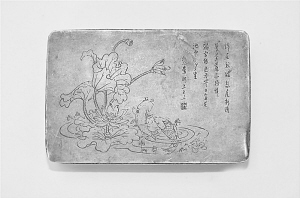 墨盒有铁质、铜质和塑料材质的,形状有圆、方和椭圆的,大小不等。有的墨盒上刻有山水、花鸟等图案,美观大方。墨盒内装有含墨的丝绵。