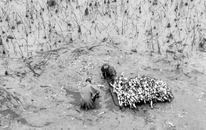 11月7日,藕农在江苏省海安县墩头镇新舍村浅水藕种植基地收获浅水藕。