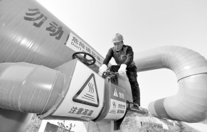 11月6日,工作人员在衡水高新区操作投入运行的北区输汽管道阀门。