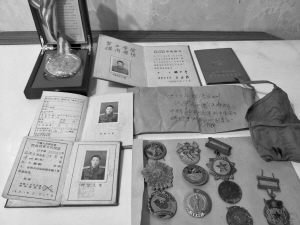 “爸呀!你这可是放了60多年的宝贝呀!”看到孔令言老先生拿出的一个针线包,孔远华一眼认出是小时候曾经见过一次的父亲的“珍藏品”。记者看到,这个针线包是军绿色的,应该是部队发的,像个小书包一样带盖、里面有3个小口袋。而这个针线包里,还放着更值得宝贝的宝贝——十多枚纪念奖章。