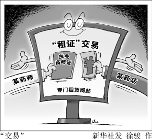把证放到药店,按月就能领取一两千元租金;有专门的租赁网站提供租证交易,甚至衍生出大批只为“租证”而考证的人群……国家规定,新开药店必须配备执业药师,然而记者调查发现,尽管相关部门加大监管力度,但当前很多药店只见证件不见人的“影子药师”现象依然存在,且形成了一条药师租证、药店用证、专业网站牵线搭桥的黑色产业链。 新华社发