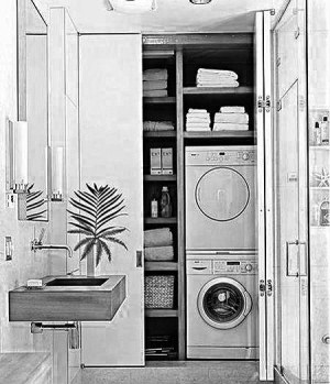 ■洗衣区放进卫生间,脱下的衣服直接扔进洗衣机。